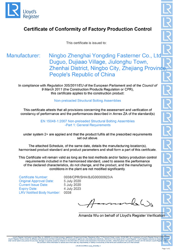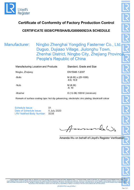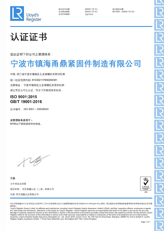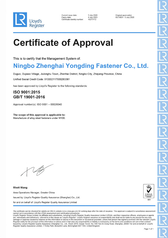 NingBo ZhengHai YongDing Fastener Co., Ltd. established in 2007, located at TongHe Dong Road, No.26, LuoTuo Street, ZhenHai District, NingBo, China.This covers an area of 16600 square meters include 10300 square meters construction area. We are committed to providing domestic and foreign customers with high quality and cost-effective fastener products and integrated solutions.